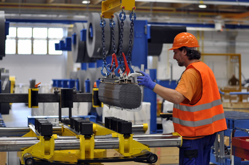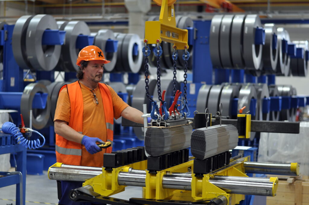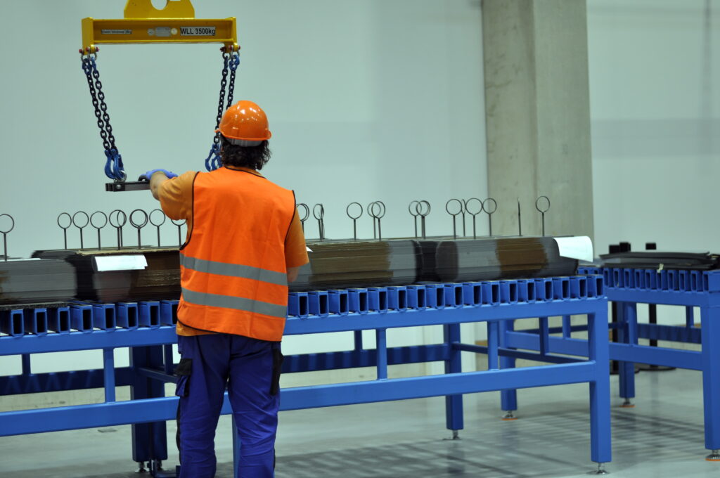 Obr. 2 Přesun vysekaných sloupků na montážní stůl