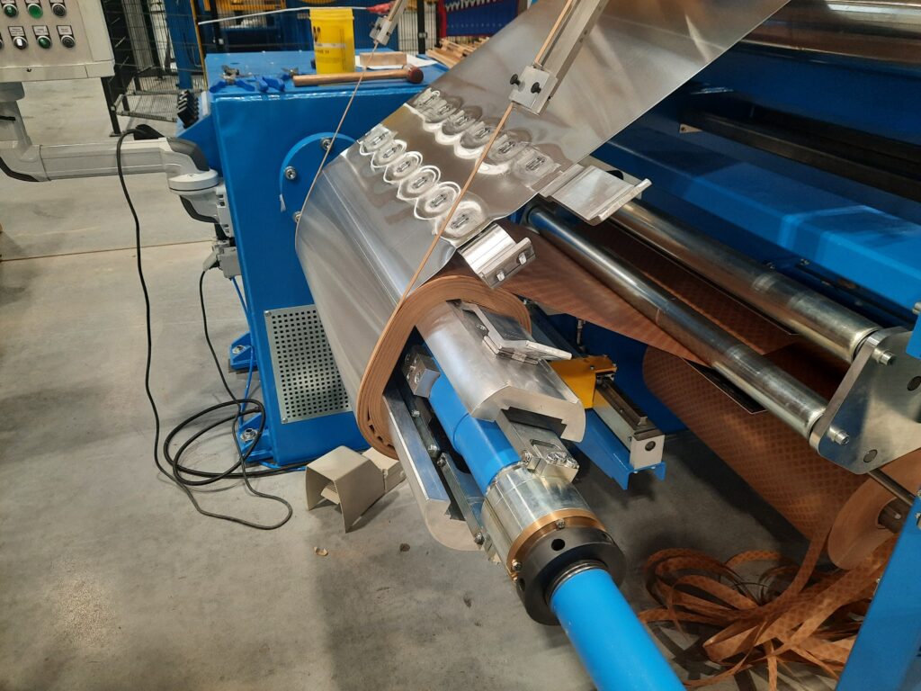 Pro navíjení fólie slouží speciální navíječky. Nejznámějším výrobcem těchto navíječek v Evropě je Švýcarská firma Tuboly-Astronic AG. Pro distribuční transformátory je od tohoto výrobce nejvhodnější model navíječky EFECO 800-1 C, který opět také využívá Elpro-Energo s.r.o. Popis funkce takového stroje a postup výroby je uveden v následujících odstavcích. Navíječka EFECO 800-1 C má modulární konstrukci. Skládá se z odvíječe fólie, jednotek na úpravu fólie, odvíječe izolace a z místa, kde je tvořeno výsledné vinutí.